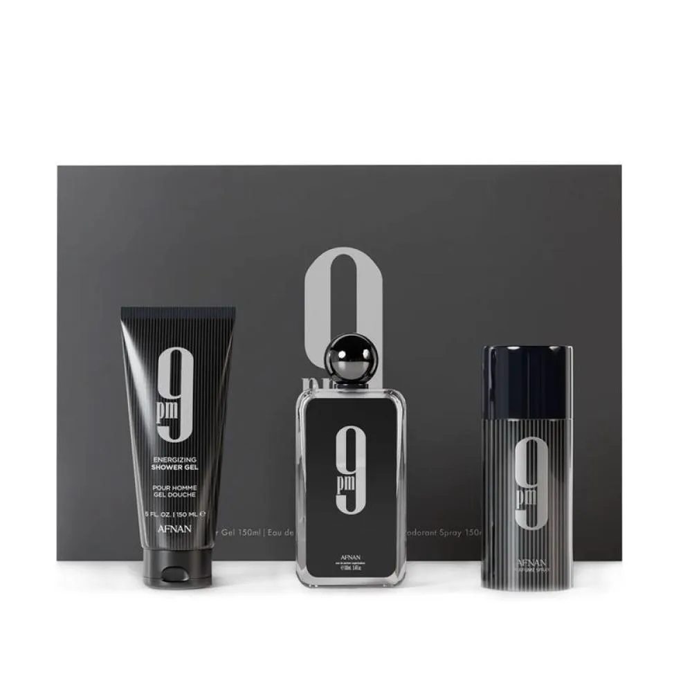 Descrição do produto Afnan 9 pm EDP 100 ml + DEO em spray 150 ml + SG 150 ml M