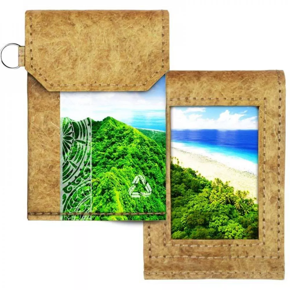 As carteiras de papel de banana verde são feitas sem crueldade, da forma mais amiga da natureza possível. São à prova de água e absolutamente únicas. As próprias fibras de banana são resistentes à água, e no processo de fabrico, um revestimento de cera fina aumenta a durabilidade da carteira. Isto também protege a carteira durante a utilização diária. O desenho original é inspirado pela própria vida nas ilhas da Micronésia. As ilustrações na superfície são pintadas à mão com tinta à base de água.