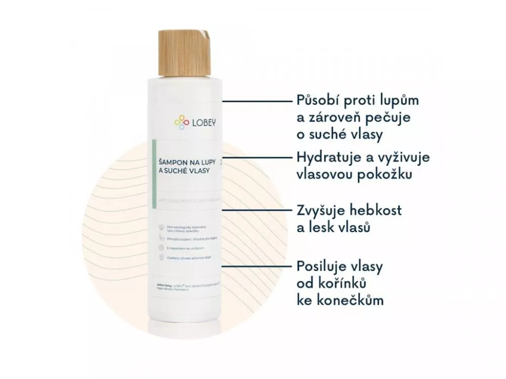 Descrição do produto Lobey Shampoo Anticaspa e Cabelos Secos 200 ml