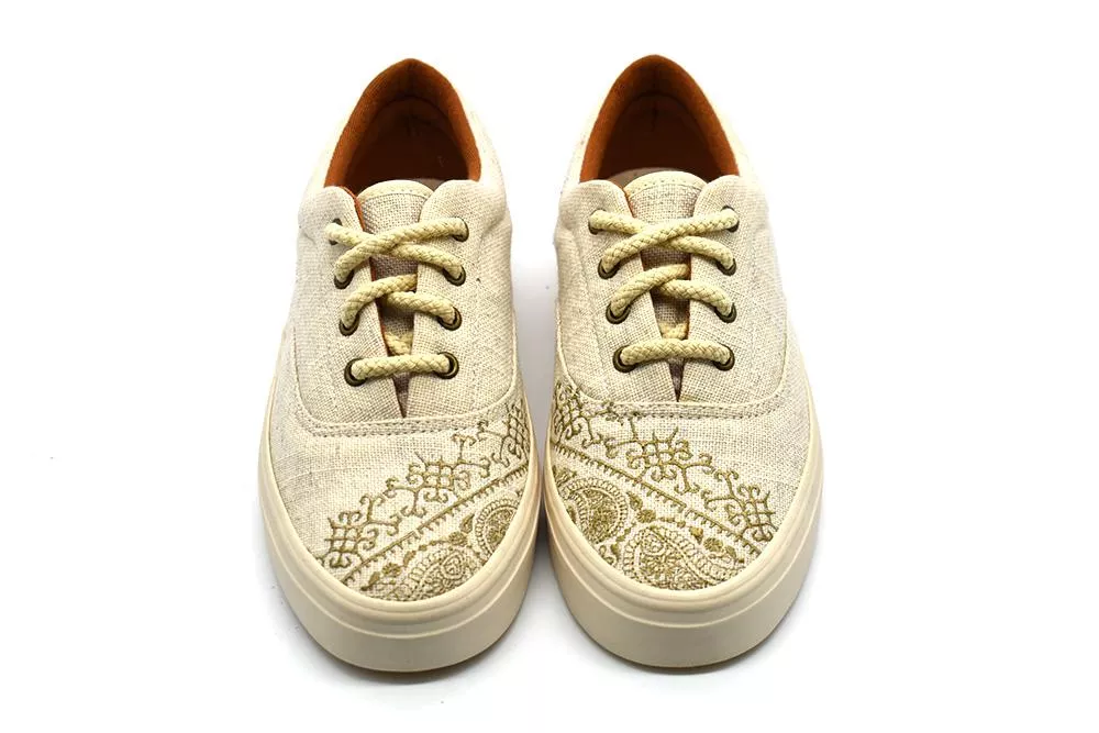 As sapatilhas Perky Light Bordado irão encantar todos os amantes e amantes da natureza. São feitas de tecido tecido tecido à mão numa cor beije suave, decorado com bordados tradicionais e completado com atacadores de algodão. Graças à sola de PVC durável, estas belezas caminharão consigo inúmeras milhas pela cidade e pelo campo.